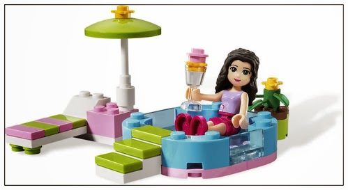 Lego 3931 Emma's Splash Pool中文名 : 艾瑪的游泳池美金價 : USD 5.99台幣價 : NT 299零件數 : 43 pieces人偶數 : 1名適合年齡 : 6-12歲年份 : 2012年系列 : Friends登場角色 : Emma