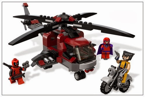 Lego 6866 Wolverine's Chopper Showdown美金價 : USD 19.99零件數 : 199 pieces人偶數 : 3名適合年齡 : 6-12歲年份 : 2012年系列 : SuperHero , 電影授權登場角色 : 金鋼狼,萬磁王,死侍短評 : 先聊人偶部份,金鋼狼還是休傑克曼大叔的皮外套版本比較帥氣,不過樂高版的髮型還真炫說,死侍我一開始以為蛛蛛人,拿刀又拿槍超吸睛的,萬磁王是個帶安全帽的超能大叔普普,載具直升機看起來不錯,顏色跟森警的紅車有一樣,應該是今年的新色系吧