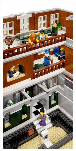 接著看到的這部份則是此次最令人驚奇的機關設計喔,這張照片的切面非常有趣,仔細觀察可以發現這個空間是由一樓相通至三樓,有什麼東西會這麼設計呢?..大家心裡想的沒錯,這可是電梯設計喔,樂高城市真的是愈來愈進化了,好棒的設計說~~