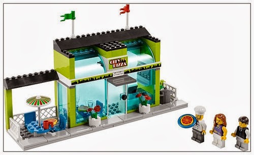 另外一樣採用了大片透明藍零件的是一間匹薩店,這似乎與7641中出現的匹薩店有種異曲同工之妙呢,大家也可以比比看喔